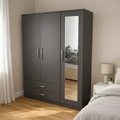 3 Door Wardrobe with Mirror and Drawers is designed to provide generous clothing storage while keeping your bedroom organised and clutter free. This 3 Door Wardrobe with Mirror and Drawers combines wide hanging space, mirror functionality, and drawer storage to create a practical furniture solution for everyday use.