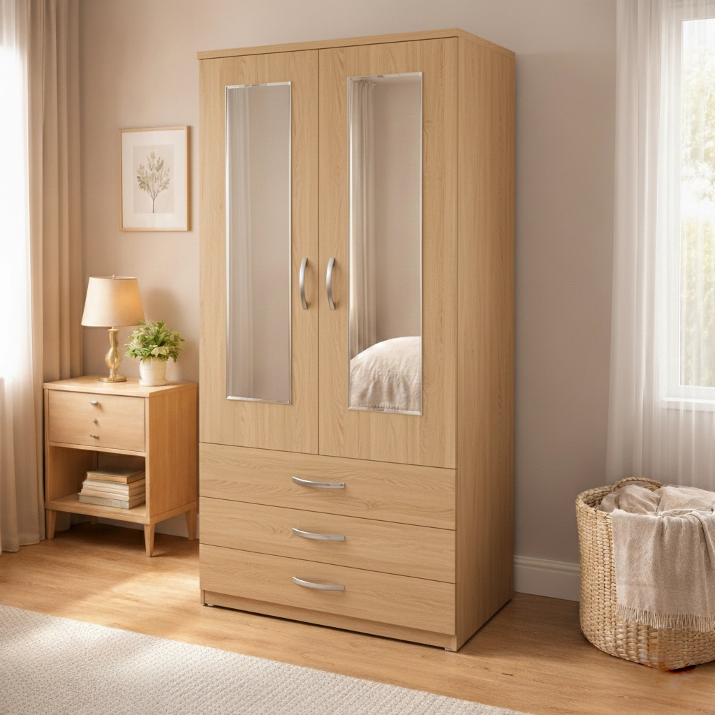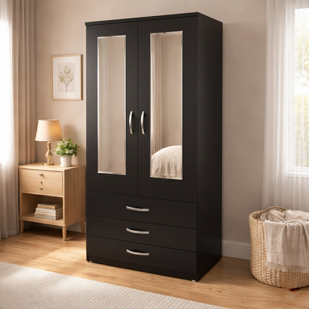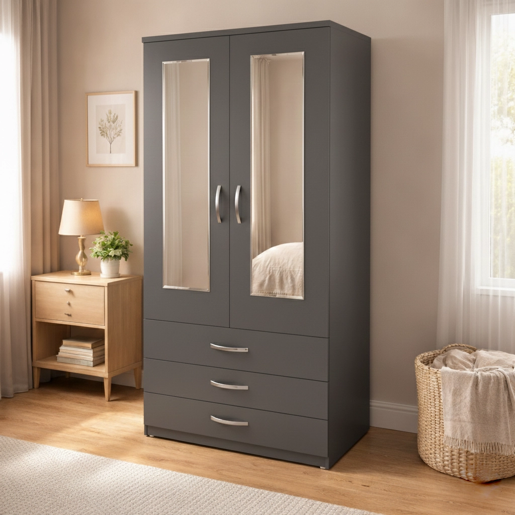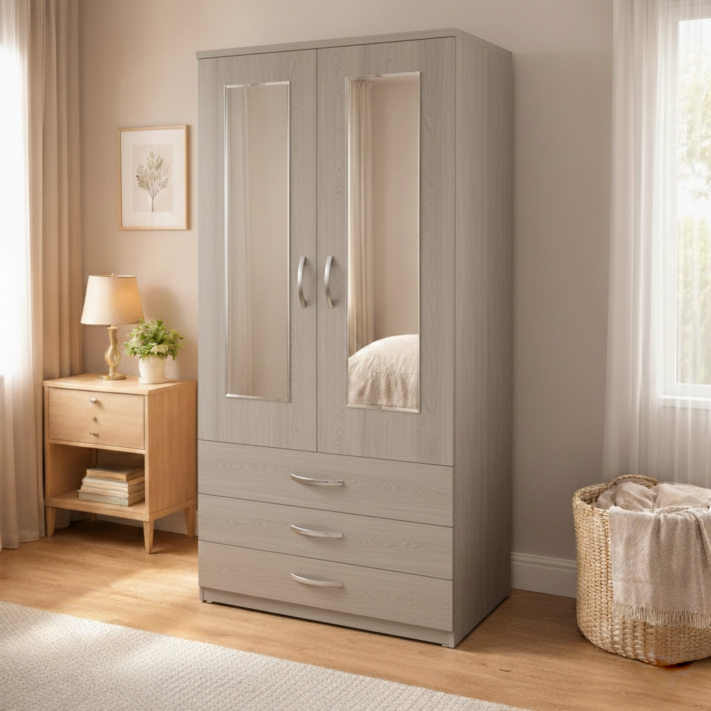 2 door mirrored wardrobe with drawers is designed to provide practical clothing storage while maintaining a clean and organised bedroom environment. Combining hanging space, drawer storage, and full-length mirrors, this wardrobe offers a convenient solution for everyday bedroom organisation.