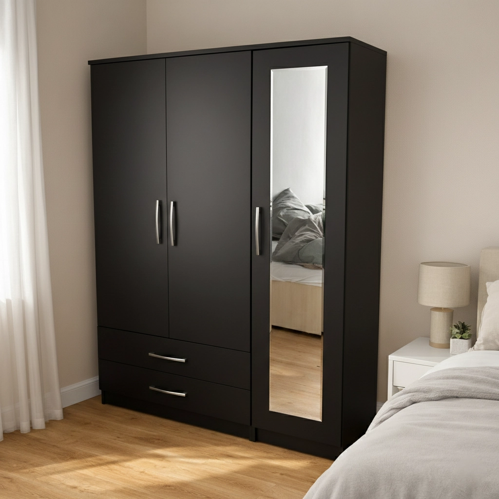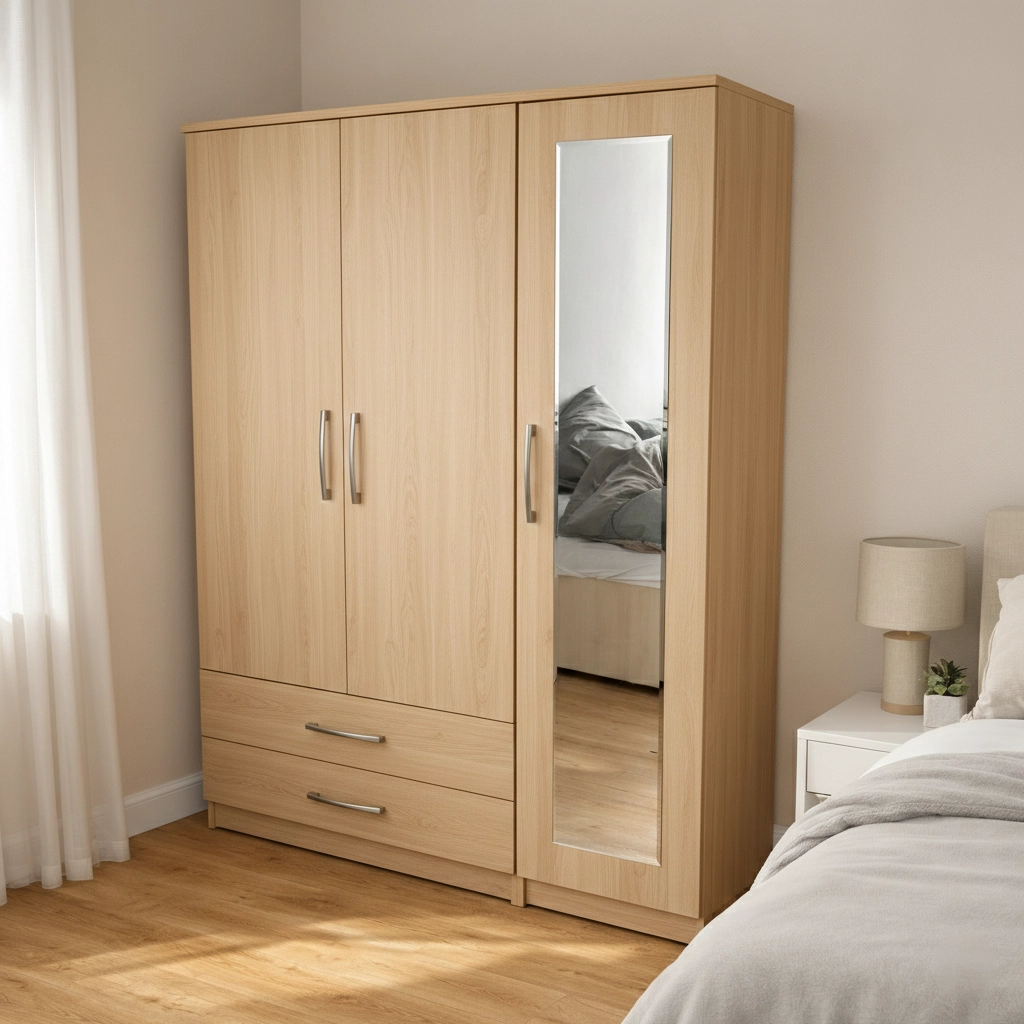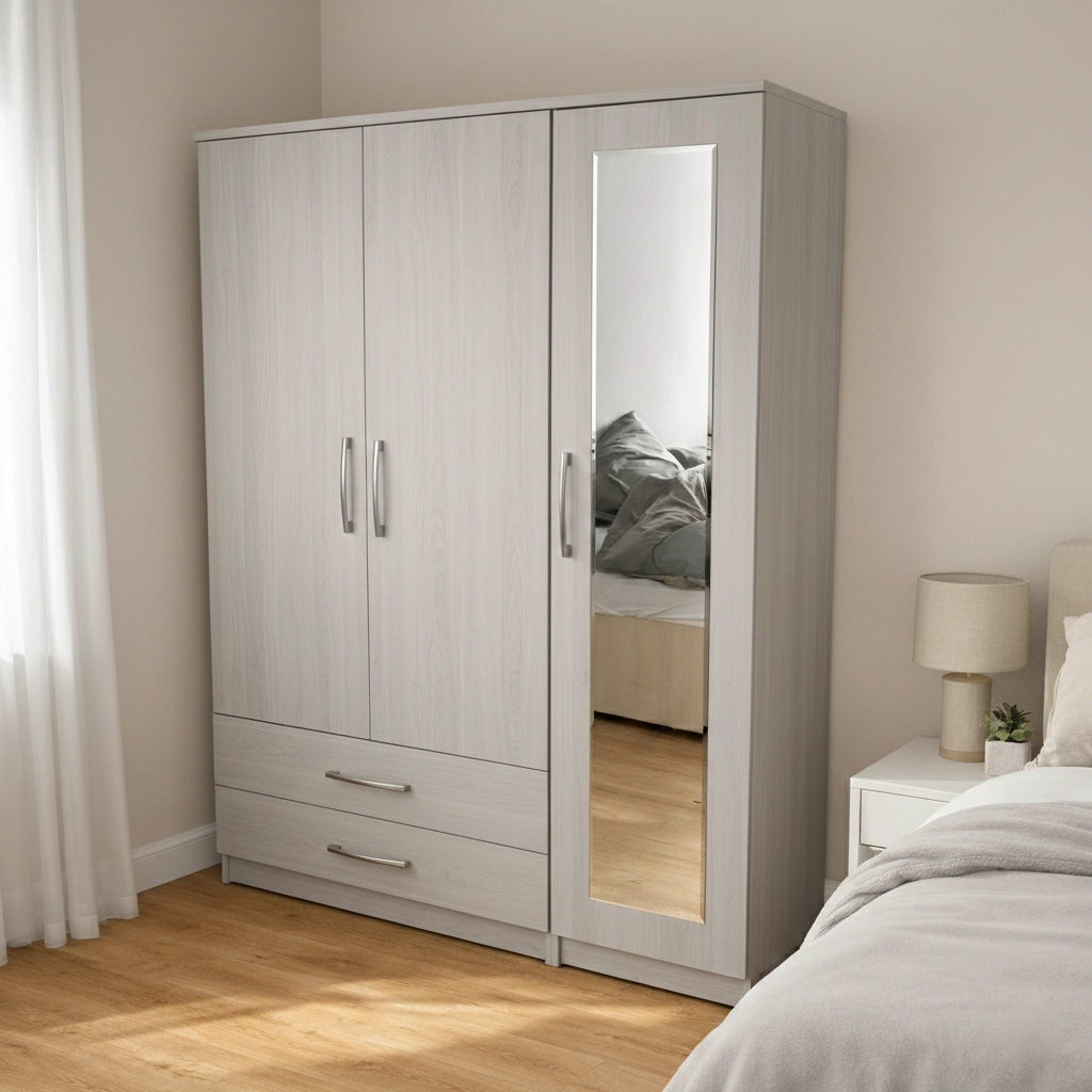 Upgrade your bedroom with this premium 3 door wardrobe with mirror and drawers, designed to provide maximum storage capacity, elegant style, and everyday practicality. This wardrobe is an excellent choice for homeowners who need extra space while maintaining a modern and organised bedroom interior.