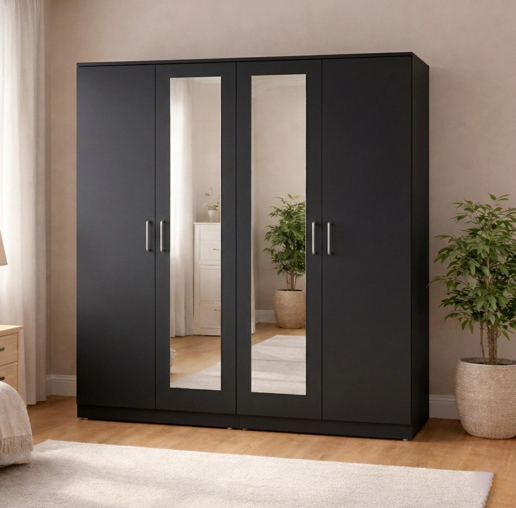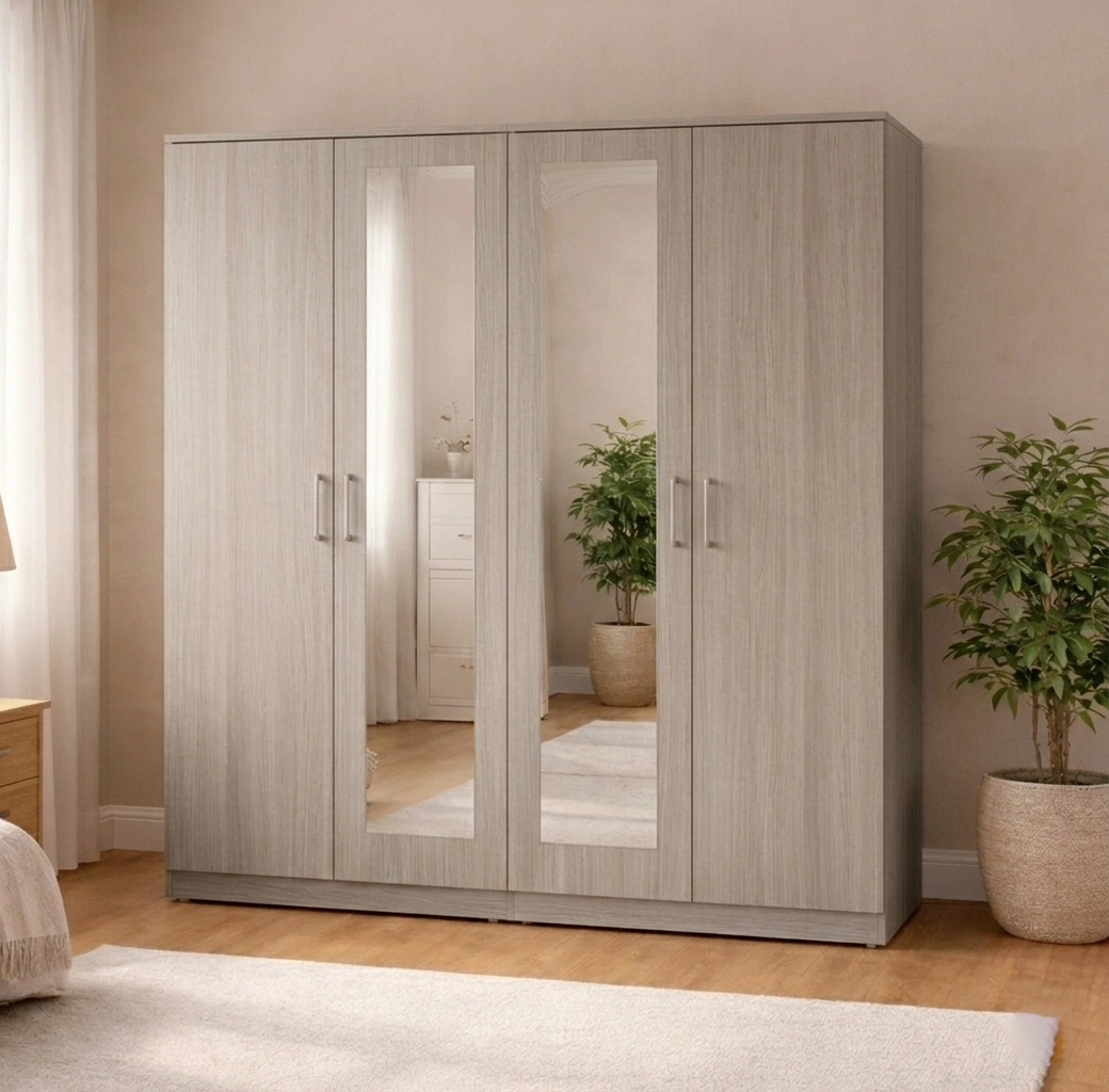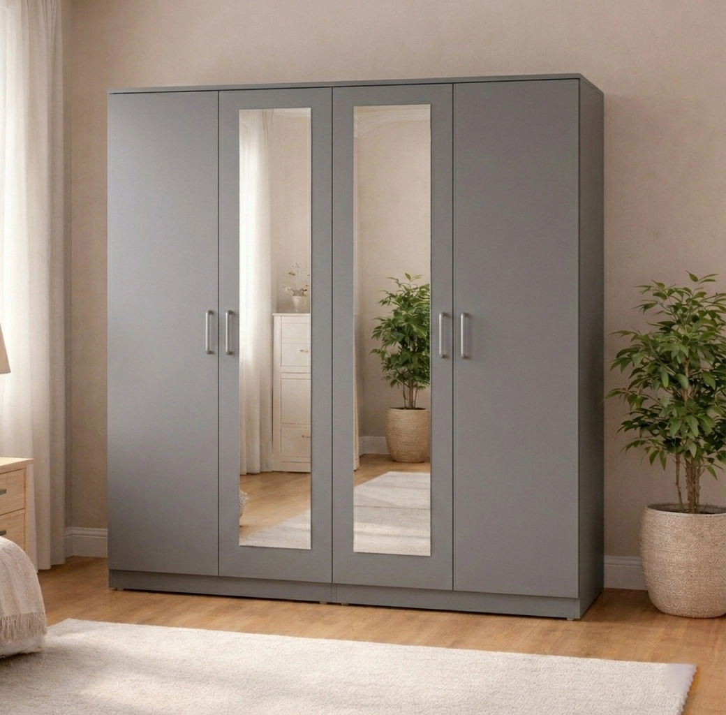 The 4-door layout offers enhanced accessibility and a strong visual presence, making it a standout storage solution for larger bedroom spaces.