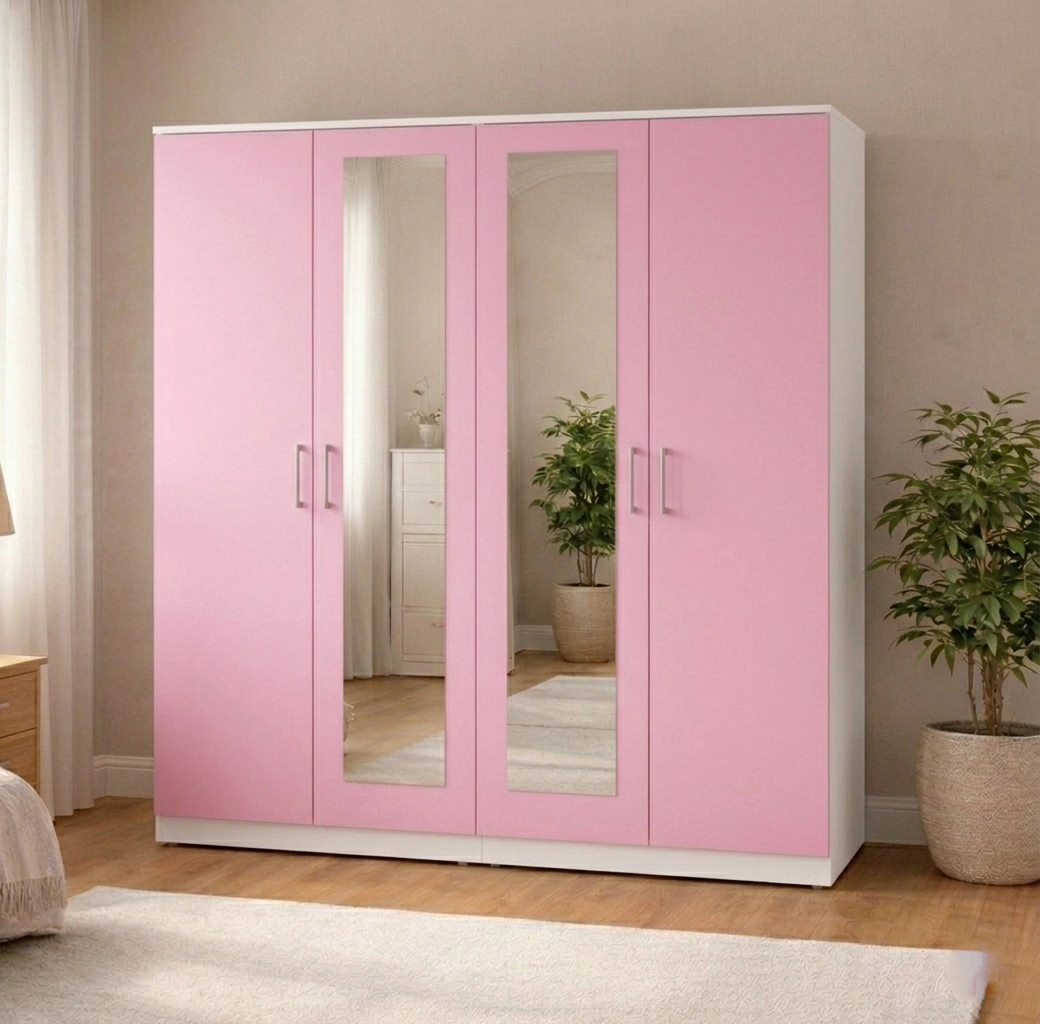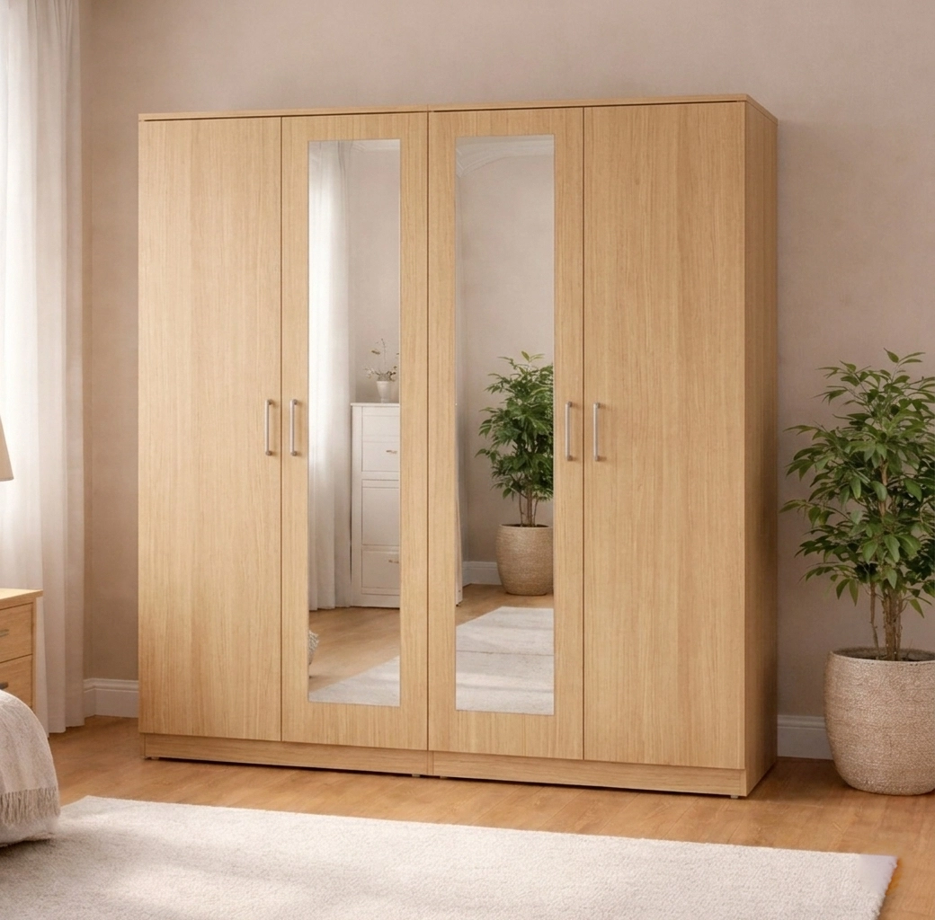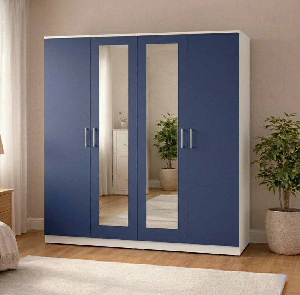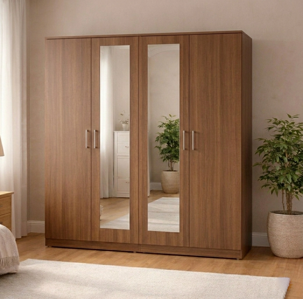 The 4-door layout offers enhanced accessibility and a strong visual presence, making it a standout storage solution for larger bedroom spaces.