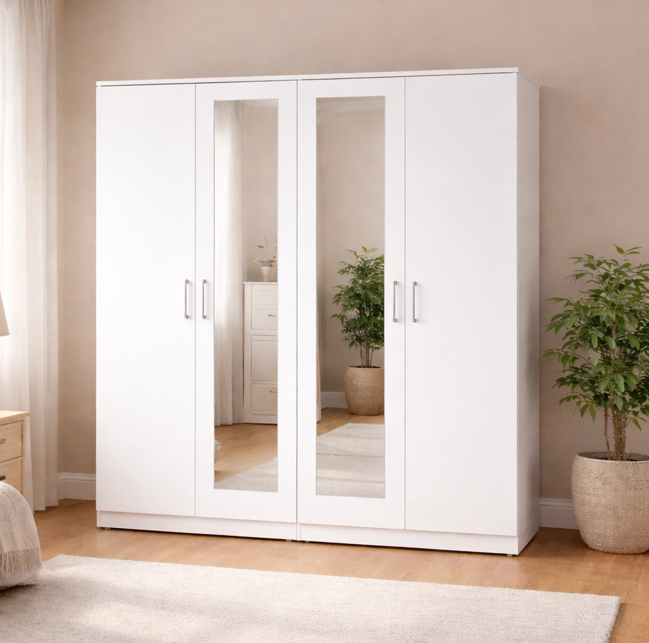 - Product Type: Modern White 4 Door Mirrored Wardrobe