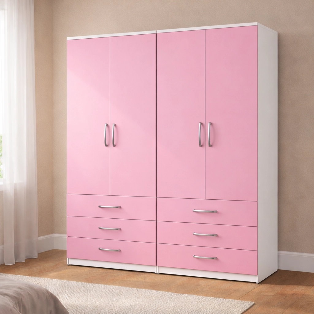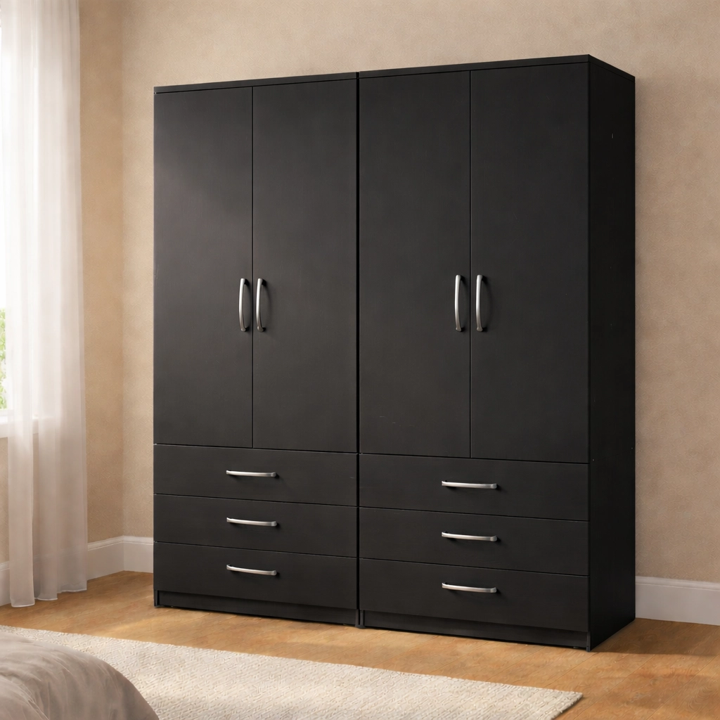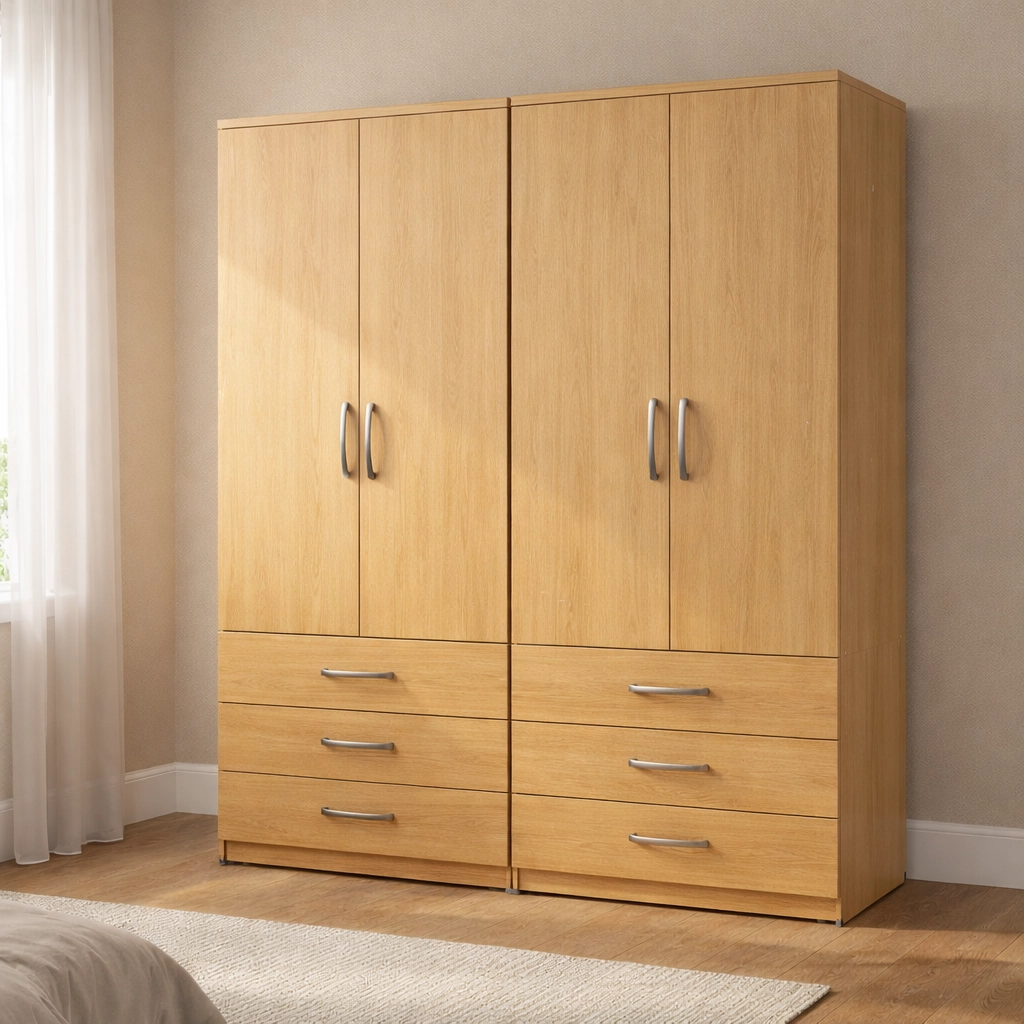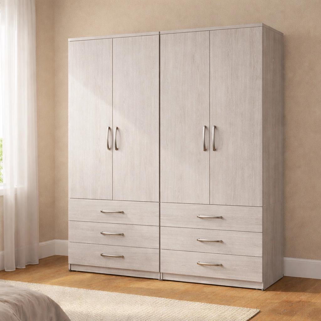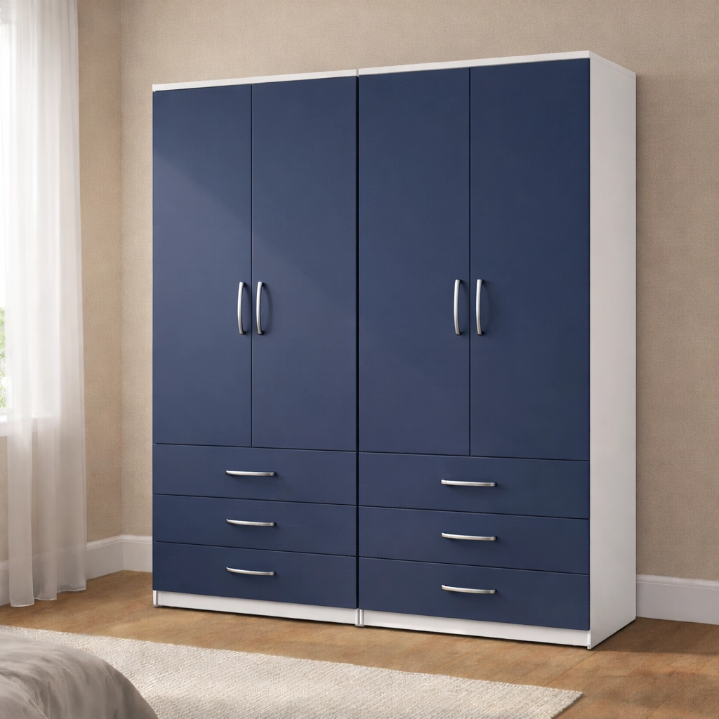 Upgrade your bedroom with this premium 4 door wardrobe with 6 drawers, expertly designed to deliver maximum storage capacity, refined style, and everyday practicality. This wardrobe is an ideal choice for larger bedrooms and families who need generous storage without compromising on a modern, elegant look.