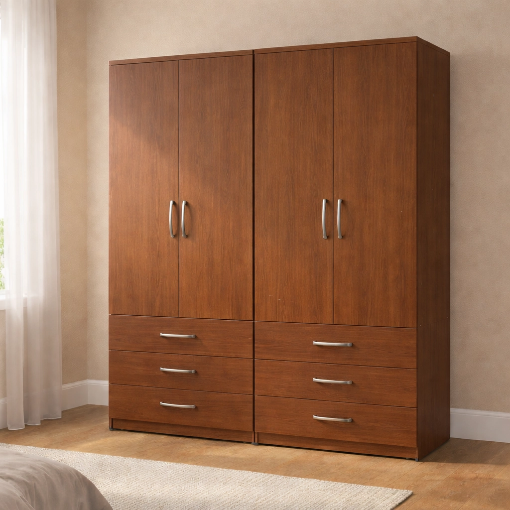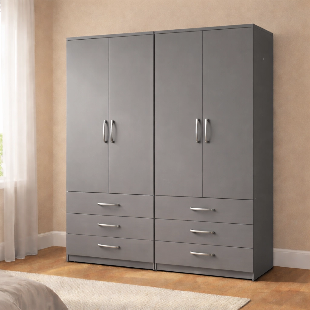 The 4-door layout offers enhanced accessibility and a strong visual presence, making it a standout storage solution for larger bedroom spaces.