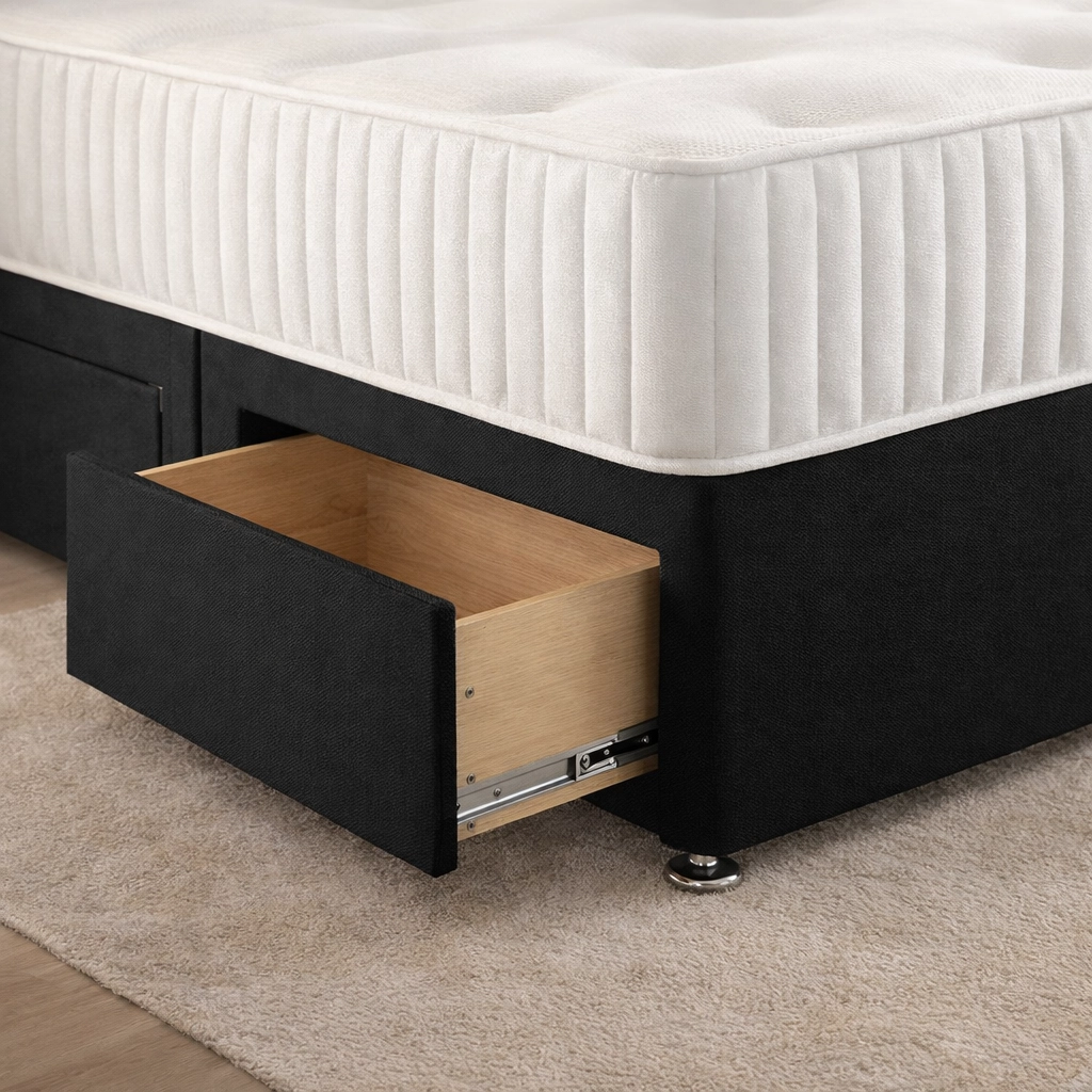 UK Luxury Divan Bed Set: Plain Headboard, Storage & Mattress